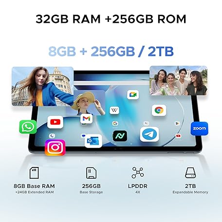 • DOOGEE T36(2025) Android 15 Tablet,12 inch Tablet 32GB+256GB/ 2TB Expand Octa-Core Gaming Tablets,8800mAh,FHD+ Touchscreen with sim Card Slot,WiFi 5,Dual Camera,BT5.0,Widevine L1,Black