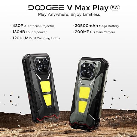 Thông tin sản phẩm DOOGEE V MAX Play 5G Rugged Phone with 100 Lumens Projector,36GB+512GB/2TB,200MP+32MP Camera,Dimensity 7300 Rugged Smartphone,20500mAh,6.78" FHD+120Hz,1200LM Dual Camping Lights,Waterproof/NFC/WiFi6E