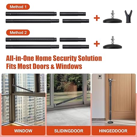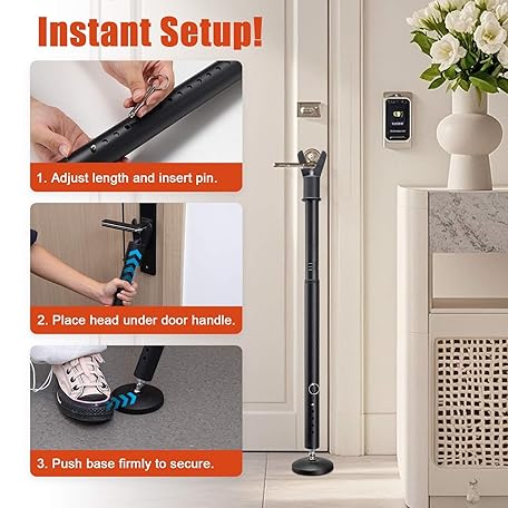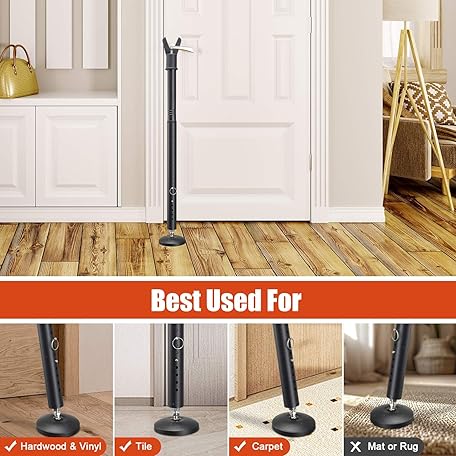 Thông tin sản phẩm Door Security Bar - Upgraded Anti-Slip Base,Heavy Duty Burglar Door Stopper Stick,28-52" Adjustable Barricade Safety Jammer Stoper for Front Door Patio Sliding Glass Window,Black