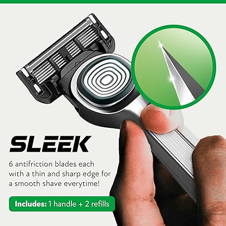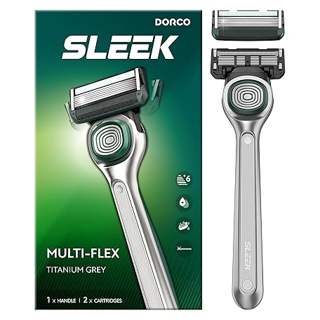 • DORCO SLEEK Six Blade Razor System with Multi-Flex Technology, Precision Shaving Razor Handle, Includes 2 Cartridges