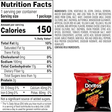 Sản phẩm Doritos Flavored Tortilla Chips, Flamin' Hot Nacho, 1 Ounce (Pack of 40) đang được bán với giá ưu đãi là $43.3493 tại nước Mỹ.