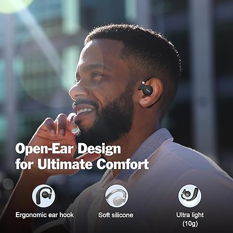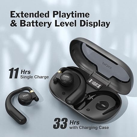 Thông tin sản phẩm DOSS Open Ear Headphones with Superior Sound, Clear Calls, 30H Play, Comfort Fit, Ultra-Lightweight Design, BT 5.3-Perfect Christmas Stocking Stuffer & White Elephant Gift for Men, Women, Teens-Black