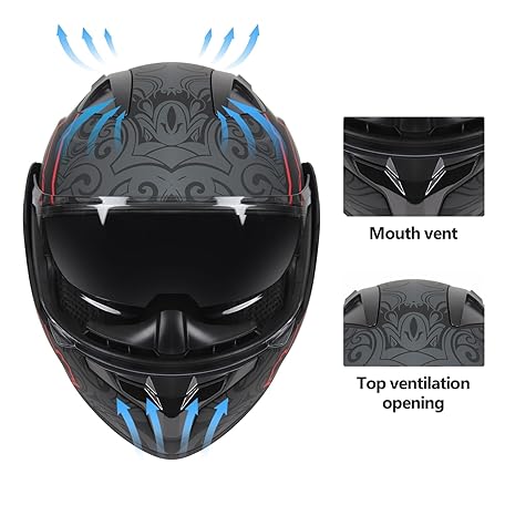 Thông tin sản phẩm DOT Approved Full Face Modular Flip-Up Dual Visor Motorcycle Helmet for Men Women, Lightweight ABS Shell & Ventilated, Street Bike ATV