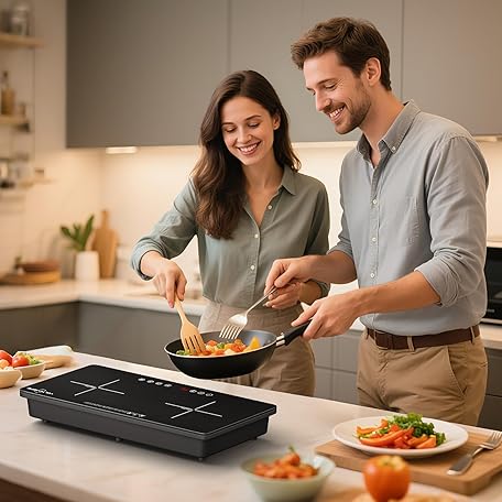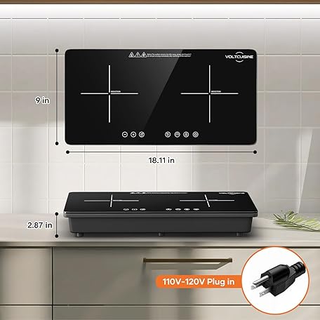 Double Induction Cooktop 1800W, Dual 900W Burners Electric Stove with Cross Mark Glass Surface, Digital Touch Control, 8 Power Levels, Fast Heating & Safety Features for Home Kitchen RV