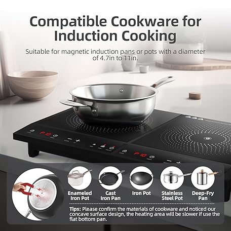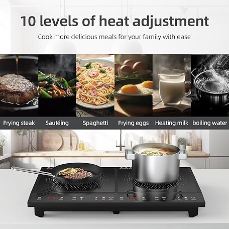 Thông tin sản phẩm Double Induction Cooktop,Zopehan Portable Induction Cooker with 2 Burner Independent Control,Ultrathin Body,10 Temperature,1800W-Multiple Power Levels,3 Hour Timer,Safety Lock