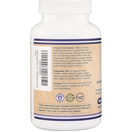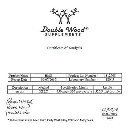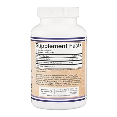 Thông tin sản phẩm Double Wood Supplements HMB Supplement, Third Party Tested, Non-GMO, Gluten Free, 120 Capsules, 1000mg per Serving, 500mg per Capsule (Pack of 2)
