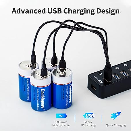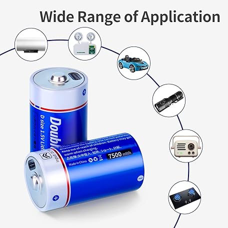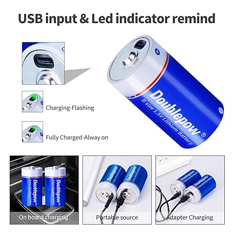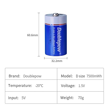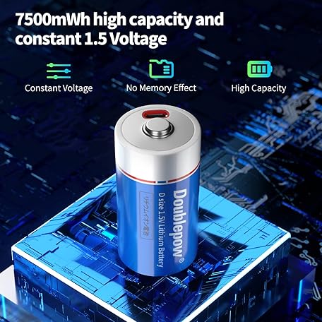 Thông tin sản phẩm Doublepow Rechargeable D Batteries,Lithium D Batteries with USB-C Port,7500mWh 1.5V D Li-ion Cell Battery,Lr20 D Size Battery,D Battery for Flashlight/Floodlight, 4 Pack