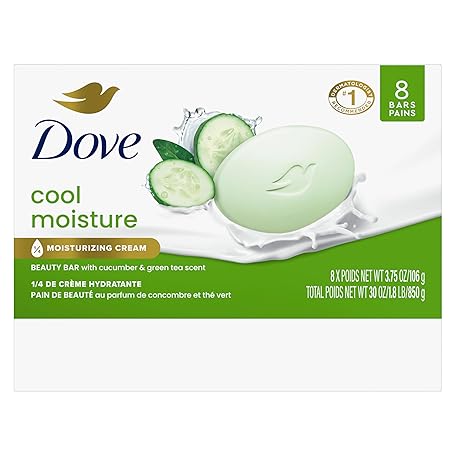 Sản phẩm Dove Beauty Bar Soap Cool Moisture Cucumber & Green Tea Scent, 8 Bars for Refreshed Skin, Leaves Skin Refreshed 3.75 oz đang được bán với giá ưu đãi là $14.7368 tại nước Mỹ.
