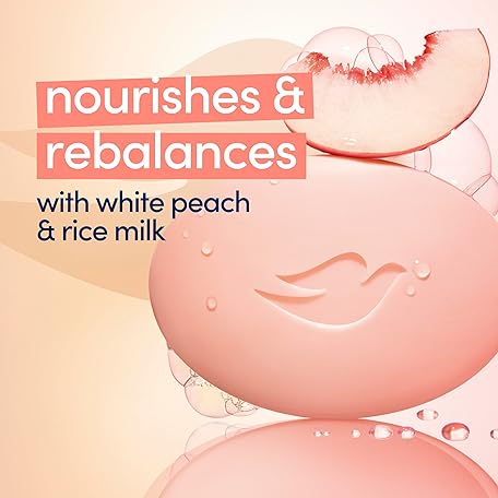 Dove Beauty Bar Soap Rebalancing White Peach & Rice Milk 6 Count for a Nourished and Moisturized Skin, with ¼ Moisturizing Cream Plant-Based Formula, 3.75 oz