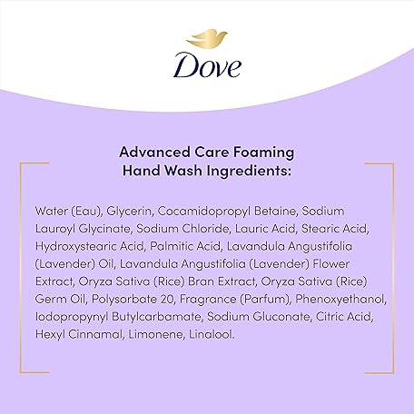 Thông tin sản phẩm Dove Lavender & Rice Milk Protects Skin from Dryness, Foaming Hand Wash More Moisturizers than the Leading Ordinary Hand Soap, 10.1 oz
