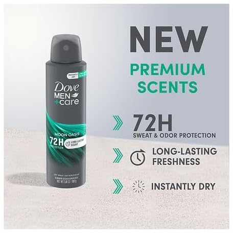 • Dove Men+Care Dry Spray Antiperspirant Deodorant Moon Oasis 72H Protection with Plant-Based Moisturizer 3.8 oz