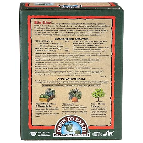 Thương hiệu Down to Earth là cái tên nổi tiếng được rất nhiều khách hàng trên thế giới chọn lựa. Với kiểu dáng đẹp mắt, sang trọng, sản phẩm Down to Earth Organic Bio-Live Fertilizer Mix 5-4-2, 5 lb là sự lựa chọn hoàn hảo nếu bạn đang tìm mua một món cho riêng mình.