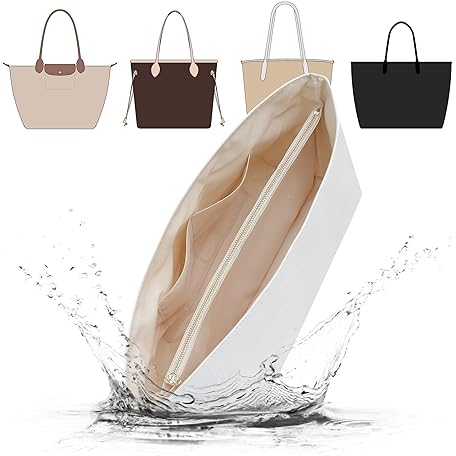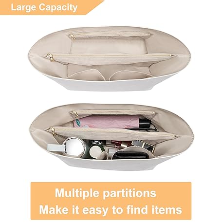 Doxo Doxo Dupontpaper Ultra Lightweight Purse Organizer Insert for Lv Neverfull MM/C.oach City 30/L.ongchamp Shoulder Bags,Bag Shapers for Luxury Handbags(White-Beige,MM)