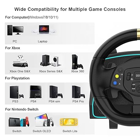 Thông tin sản phẩm DOYO Racing Wheel with 1080° Rotation, Hall Effect Pedals, 6-Speed Shifter & Dual Vibration for Xbox Series X|S, Xbox One, PS4, PC, Nintendo Switch, Android