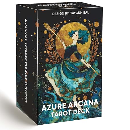 DPEHAKMK Azure Arcana Tarot Deck, 78 Tarot Cards with General Guidebook, Artistic Blue and Gold Fantasy Tarot Card for Beginners, Reading Witchcraft Divination Tool