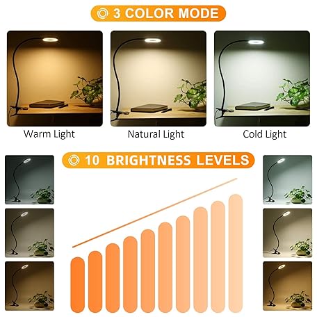 Thông tin sản phẩm Dpower Clip on Light Reading Lights, 48 LED USB Desk Lamp with 3 Color Modes 10 Brightness, Eye Protection Book Clamp Light, 360 ° Flexible Gooseneck Clamp Lamp for Desk Headboard Video Conferencing