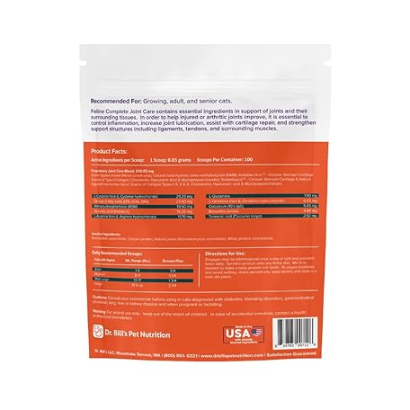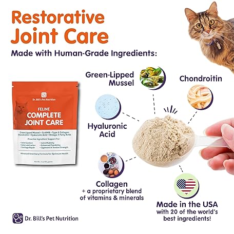 Thông tin sản phẩm Dr. Bill’s Feline Complete Joint Care | Advanced Hip & Joint Supplement for Cats | Green Lipped Mussel Extract, Collagen Type II, Chondroitin, Hyaluronic Acid, Omega 3 and Colostrum | Powder, 85g