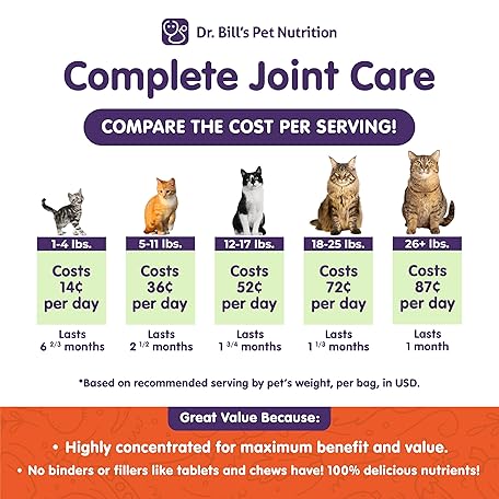 Sản phẩm Dr. Bill’s Feline Complete Joint Care | Advanced Hip & Joint Supplement for Cats | Green Lipped Mussel Extract, Collagen Type II, Chondroitin, Hyaluronic Acid, Omega 3 and Colostrum | Powder, 85g đang được bán với giá ưu đãi là $31.5991 tại nước Mỹ.