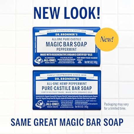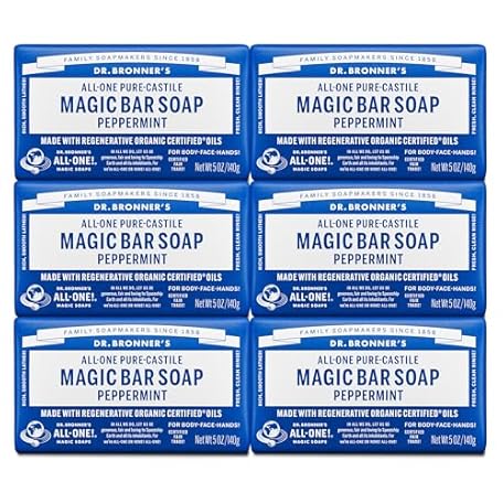 Sản phẩm Dr. Bronner's Pure-Castile Magic Soap Bars (Peppermint, 5 oz, 6-Pack) - Made with Regenerative Organic Certified Oils - For Face, Body & Hair - Gentle, Vegan - Bar Soaps for Men & Women đang được bán với giá ưu đãi là $31.5991 tại nước Mỹ.