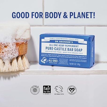 Thông tin sản phẩm Dr. Bronner's Pure-Castile Magic Soap Bars (Peppermint, 5 oz, 6-Pack) - Made with Regenerative Organic Certified Oils - For Face, Body & Hair - Gentle, Vegan - Bar Soaps for Men & Women