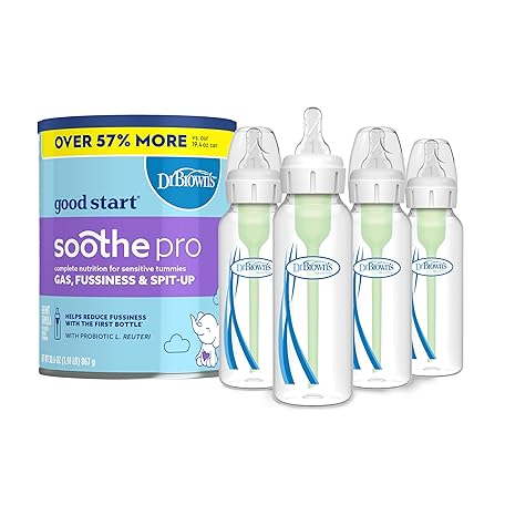 Dr. Brown's Good Start Baby Formula Powder, 30.6 Ounce & Natural Flow Anti-Colic Options+ Narrow Baby Bottle, 8 oz/250 mL, with Level 1 Slow Flow Nipple, 0m+, 4 count