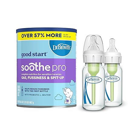 Dr. Brown's Good Start Baby Formula Powder, 30.6 Ounce & Natural Flow Anti-Colic Options+ Narrow Glass Baby Bottle 4 oz/120 mL, with Level 1 Slow Flow Nipple, 2 Pack, 0m+