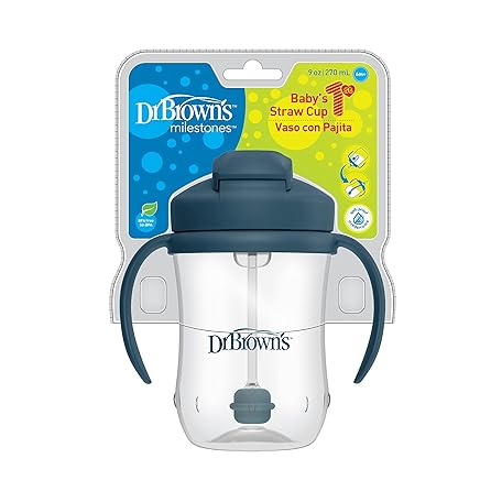Thông tin sản phẩm Dr. Brown's Milestones Baby's First Straw Cup, Training Cup with Weighted Straw, 9oz/270mL, Dark Blue, BPA Free, 6m+