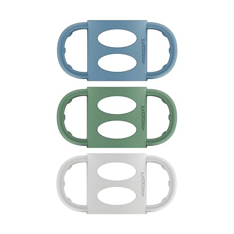 Thông tin sản phẩm Dr. Brown's Narrow Baby Bottle Handles, 100% Silicone, Easy Grip Removable Handles for Bottle to Sippy Cup Transition, Blue/Gray/Green, 3-Pack, 4m+