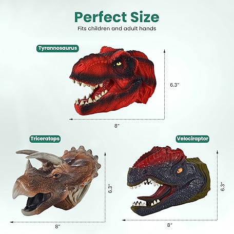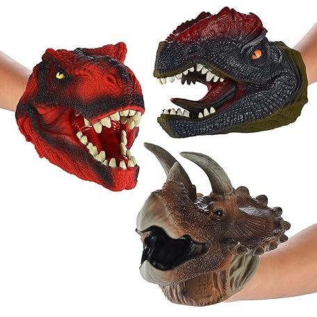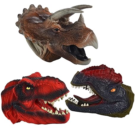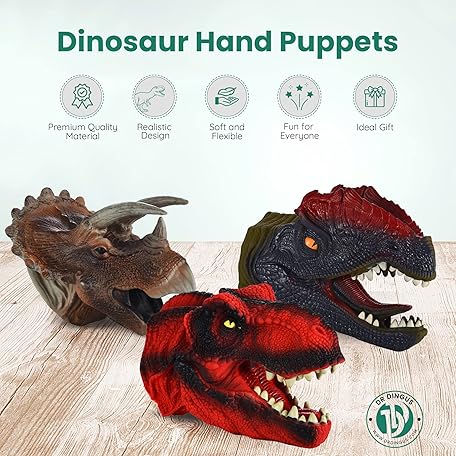 Thông tin sản phẩm DR DINGUS Hand Puppets (Dinosaur - 3 Pack) - Tyrannosaurus, Velociraptor, Triceratops - Fun and Realistic Design - Ideal for Puppet Show, Kid Fun Toy