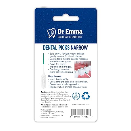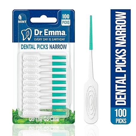 Dr. Emma Dental Picks Narrow Space Mint Soft Rubberized Tooth Picks Tight Floss Pick Easy to Use Brush Picks for Teeth Cleaning and Gum Health 100Ct/Pack, 2 Pack(200Ct)