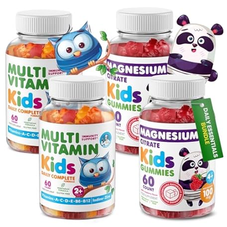 DR. MORITZ Kids Magnesium Gummies (60 Count, 2 Pack) and Kids Multivitamin Gummies (60 Count, 2 Pack) Bundle - for Relaxation and Health Support - Toddler Vitamins - Magnesium Calm Supplement