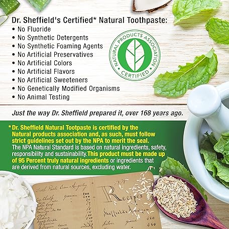 Thông tin sản phẩm Dr. Sheffield’s Certified Natural Toothpaste (Extra-Whitening) - Great Tasting, Fluoride Free Toothpaste/Freshen Your Breath, Whiten Your Teeth, Reduce Plaque (2-Pack)