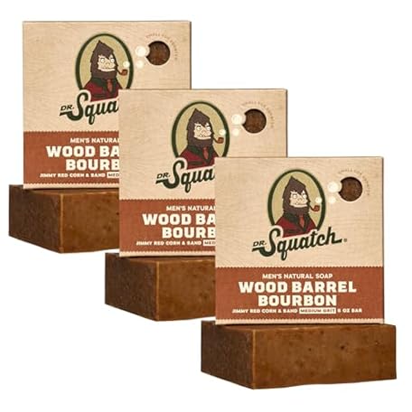 Dr. Squatch Natural Bar Soap for Men - Cold Process Soap with No Harsh Chemicals - Wood Barrel Bourbon (5 oz, 3-Pack)
