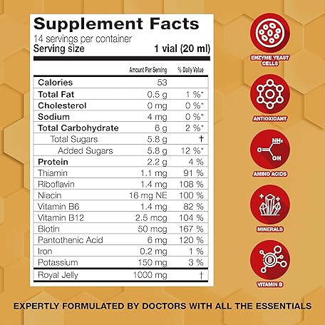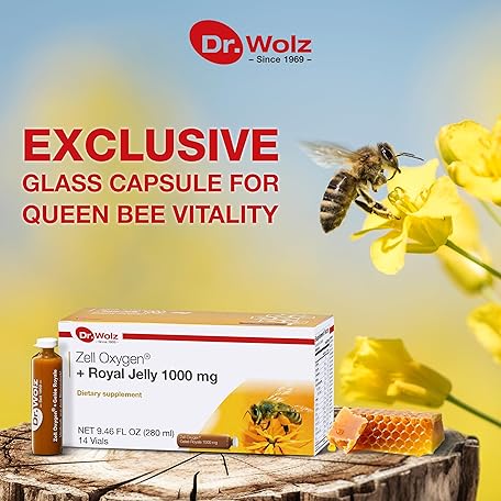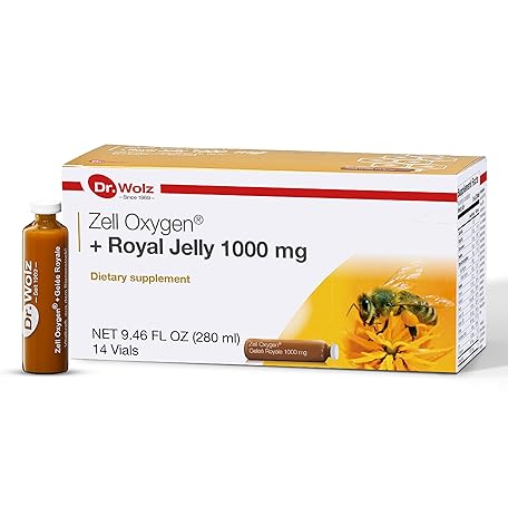 Dr. Wolz Zell Oxygen + Royal Jelly 1000mg, Organic Superfood and All Natural Energy Supplements, Nutrition for Immune Support, Healthy Skin, Fatigue Relief and Energy Boost, 14 Vials
