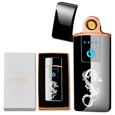 Dragon Electric Lighter - Windproof USB Rechargeable Slim Coil Lighter with Smart Fingerprint Sensor Double Side Ignition, Flameless Power Indicator (Dragon)