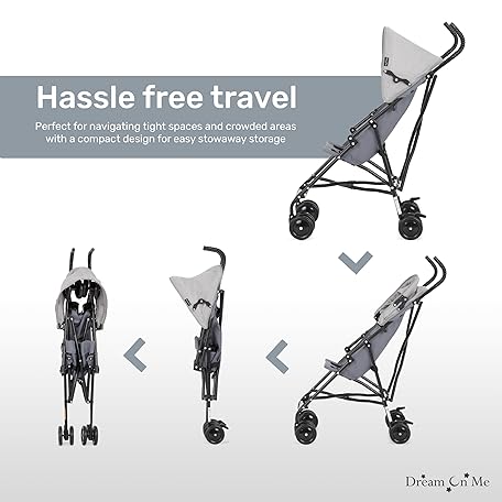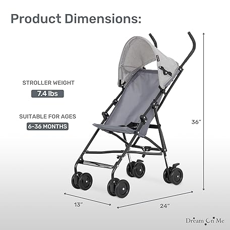 Thông tin sản phẩm Dream On Me Aero Travel Umbrella Stroller, One-Hand Quick Fold, 3-Point Safety Harness, Dual Brakes, Adjustable Removable Canopy, Lightweight Compact & Space-Saving for Infants and Toddlers – Grey