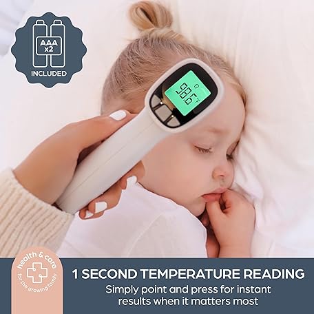 Thông tin sản phẩm Dreambaby Infrared No Contact Baby Thermometer for Forehead - Digital Display, Fever Alert, Memory Stores 20 Readings, Includes Storage Bag, for Adults and Kids