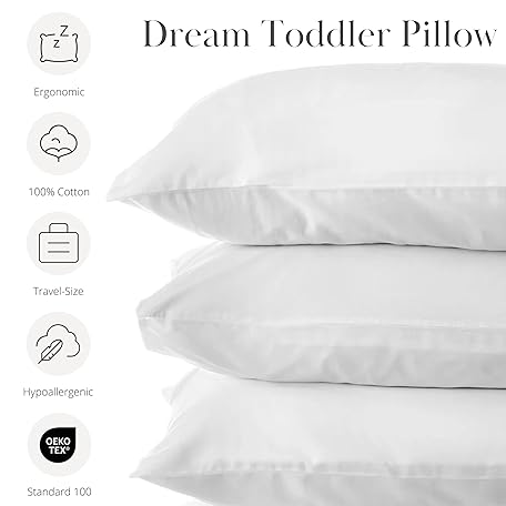 Thông tin sản phẩm Dreamland Baby Premium Toddler Pillow and White Pillowcase, 13 x 18. Machine Washable, Ergonomic Kids Pillow + Ultra Soft Viscose Pillowcase. Mom-Owned US Business, Premium Materials