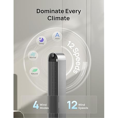 Thông tin sản phẩm Dreo Tower Fan for Bedroom, 42 Inch 120° Oscillating Fan, 25dB Quiet DC Motor, 28ft/s Velocity Bladeless Standing Fan with 12 Speeds, 4 Modes, 12H Timer Cooling Fans for Home, Living Room, Pilot Max S