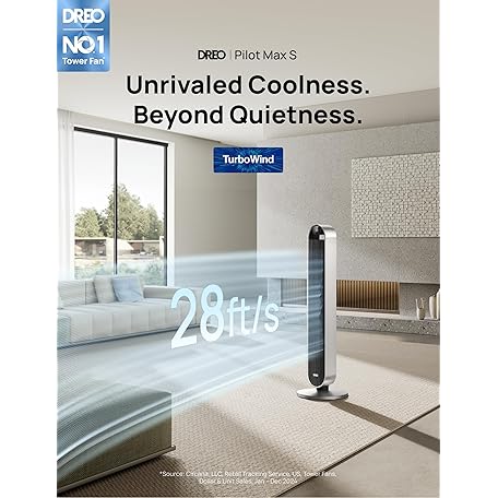 Thương hiệu Dreo là cái tên nổi tiếng được rất nhiều khách hàng trên thế giới chọn lựa. Với kiểu dáng đẹp mắt, sang trọng, sản phẩm Dreo Tower Fan for Bedroom, 42 Inch 120° Oscillating Fan, 25dB Quiet DC Motor, 28ft/s Velocity Bladeless Standing Fan with 12 Speeds, 4 Modes, 12H Timer Cooling Fans for Home, Living Room, Pilot Max S là sự lựa chọn hoàn hảo nếu bạn đang tìm mua một món cho riêng mình.