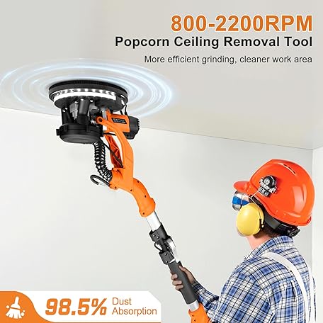 Thông tin sản phẩm Drywall Sander, 1000W Popcorn Ceiling Removal Tool, Automatic Drywall Sander with Vacuum Dust Collection, LED Light, 6 Variable Speed 800-2200RPM,15Pcs Sanding Discs, Foldable & Extendable Handle