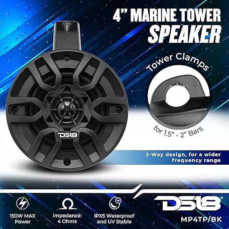 Sản phẩm DS18 MP4TP.4A 4" 600W Bluetooth Marine Tower Speakers with Amplifier and Remote đang được bán với giá ưu đãi là $326.9455 tại nước Mỹ.