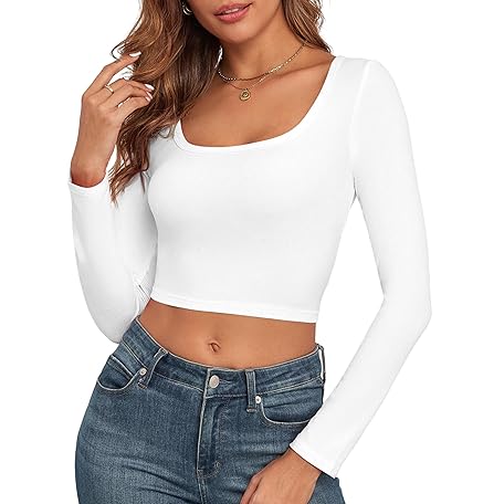 • DSPSAM Long Sleeve Crop Tops for Women Ribbed Square Neck Slim Fitted Casual Lady Fashion Y2K Top 2025