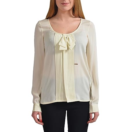 DSQUARED2 Women's 100% Silk Cream Bow Decorated Long Sleeve Blouse US S IT 40