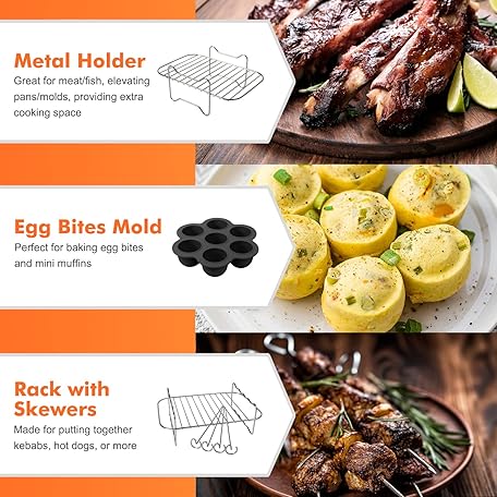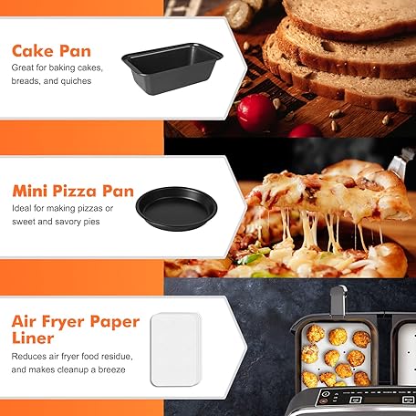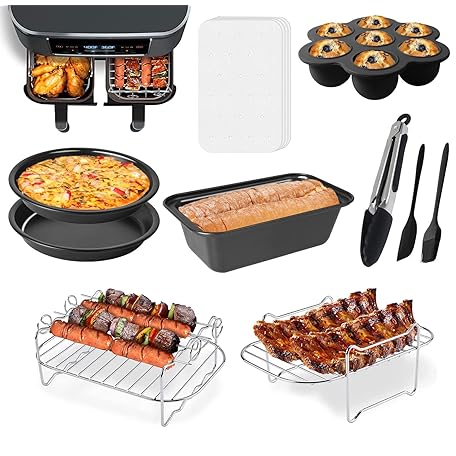 Thông tin sản phẩm Dual Basket Air Fryer Accessories, Set of 10 Fit for Ninja Dual Air Fryer DZ201, DZ401 & Most 8 Quart - 10 Quart and Larger Dual Zone Air Fryer, Include Cake Pizza Pan, Rack & Skewer, Paper Liner, etc