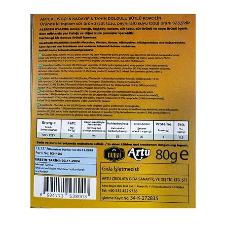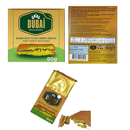 Dubai Chocolate Bar - Pistachio Cream - Holiday Candy Gift Bar with Assorted Milk, & White Chocolates – Holiday Food Gift Idea for Men, Women, Family, Corporate - 80g