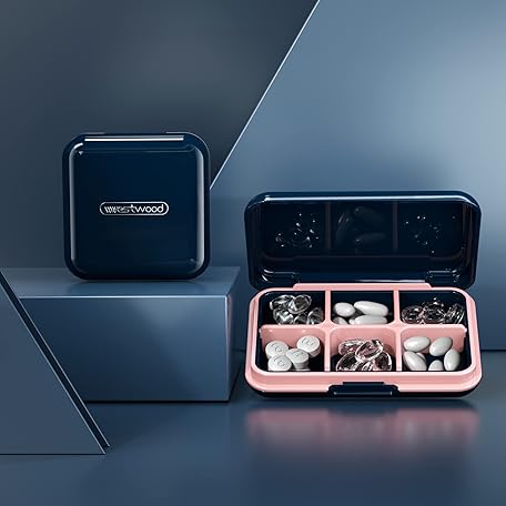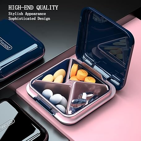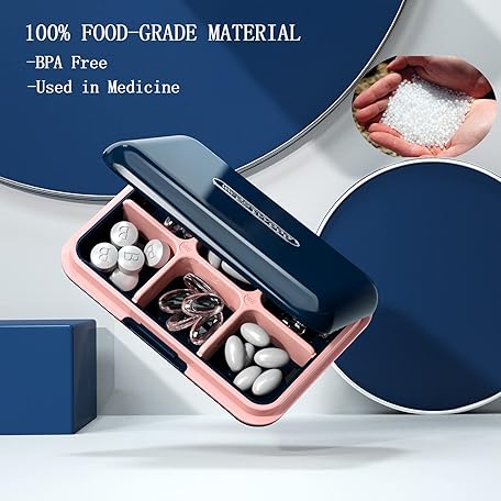 • DUBSTAR Travel Pill Organizer Moisture Waterproof Small Pill Box for Pocket Purse 4+6 Compartments Portable Pill Case Medicine Vitamin Holder Container,Blue