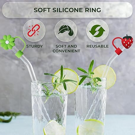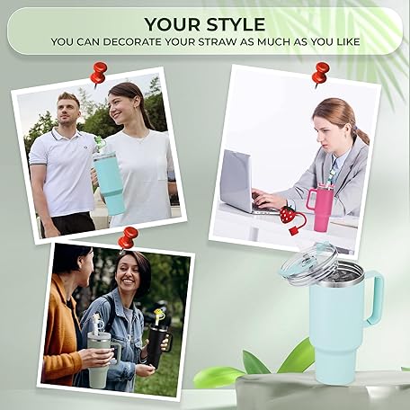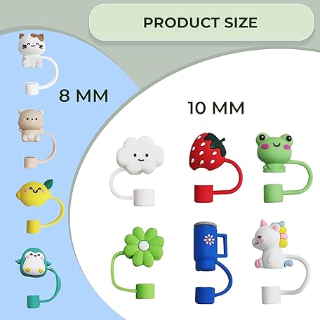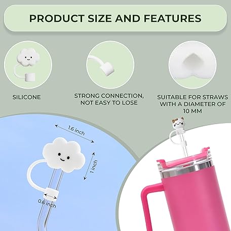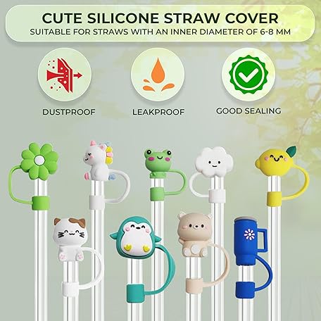 • Du&Kha 10-Pack Adorable Silicone Straw Covers for 30oz & 40oz Tumblers - Perfect for Stanley, Starbucks | Stylish & Protective Topper Caps. Note: Lemon, Cat, Bear, Penguin Fit 8mm Straws.