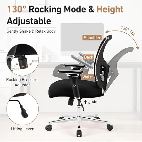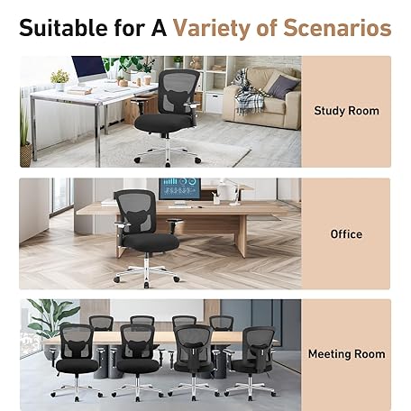 Thông tin sản phẩm DUMOS Ergonomic Home Office Desk Chair - Heavy Duty Mid Back with Lumbar Support & 4D Armrest, Height Adjustable Mesh Computer Gaming with Backrest & Swivel Wheels, Black