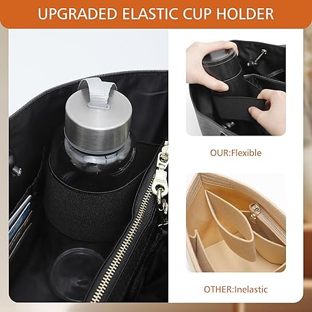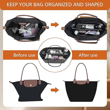 Thông tin sản phẩm DupontPaper Purse Organizer Insert for Longchamp LePliage Large, Bag Shaper with Key Leash& 17 Compartments, Upgraded Elastic Cup Holder + Anti-Slip Middle Zipper Divider(Full Black,L)